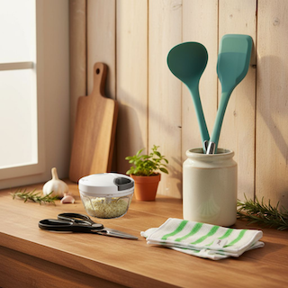❤️購買四件廚具 即送 一把不鏽鋼多功能剪刀 + 拉蒜器 + 竹潔布 + 一套美國FDA認證 矽膠鏟 + 矽膠湯勺❤️